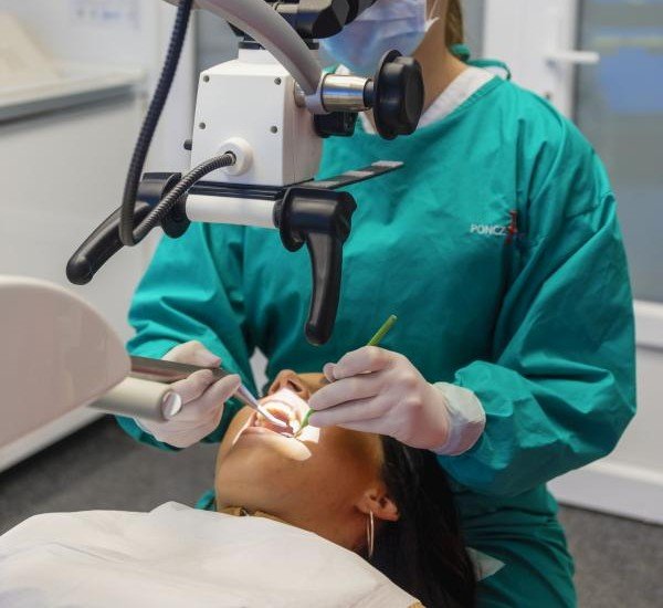 Using a dental microscope, infected tissue and bacteria are removed with exceptional precision while preserving healthy tooth structure.